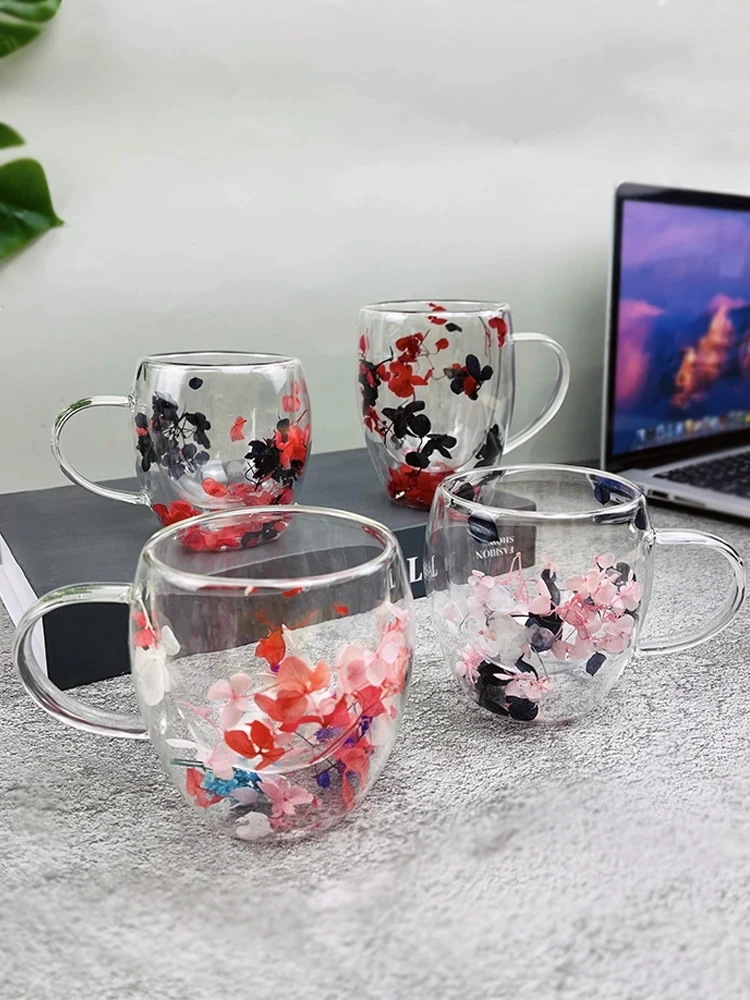 ❤ A unique gift for coffee enthusiasts in your life, each one is beautiful and unique, made from real flowers that are collected from the fields and forever preserved in transparent borosilicate glass, making the transparent glass cup look full of vitality.