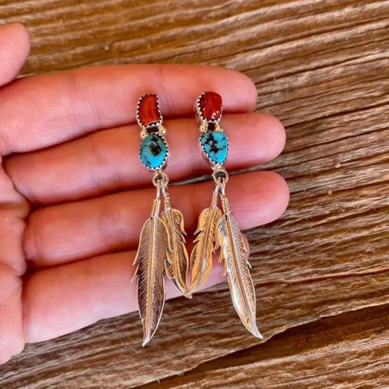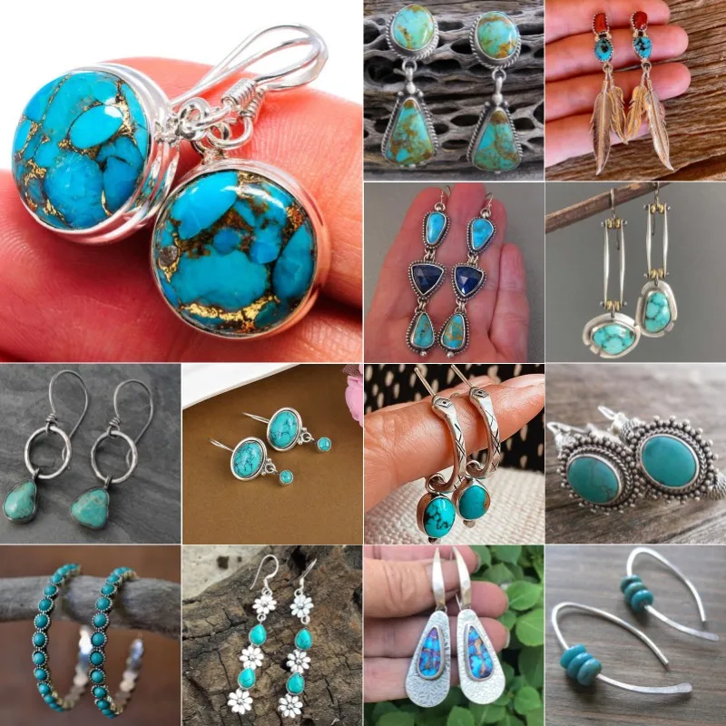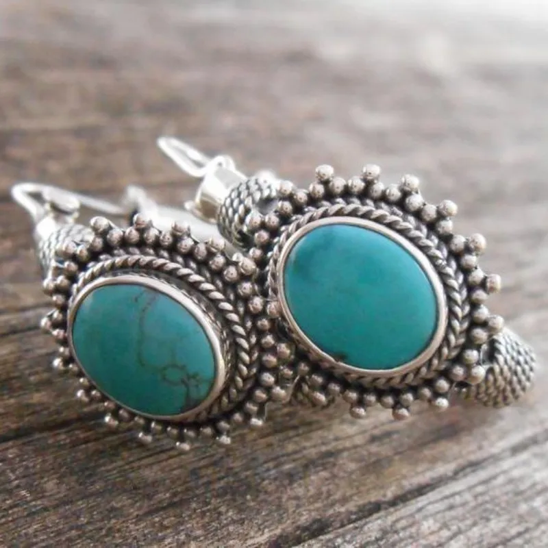 Boho Dangle Earrings for Women Vintage Selenite Turquoise Drop Earrings Ethnic Retro Pendant Ear Hook Beach Party Jewelry Gift
