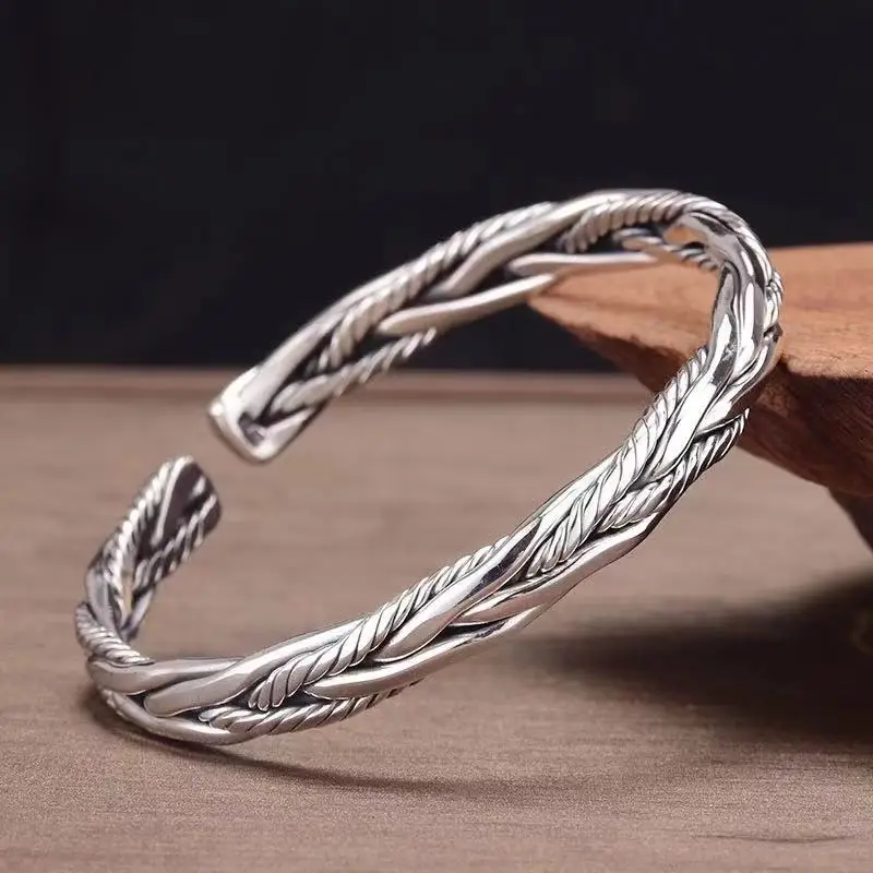 Classic Twist Braided Open Adjustable Bracelet for Men Fashion Punk Trend Cool Jewelry Gift