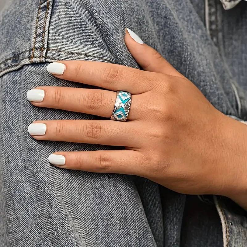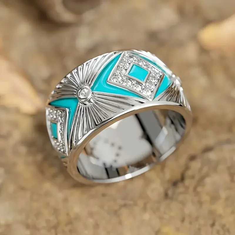 Fashion Bohemian Men's Ring New Luxury Blue Enamel Ring Anniversary Party Jewelry